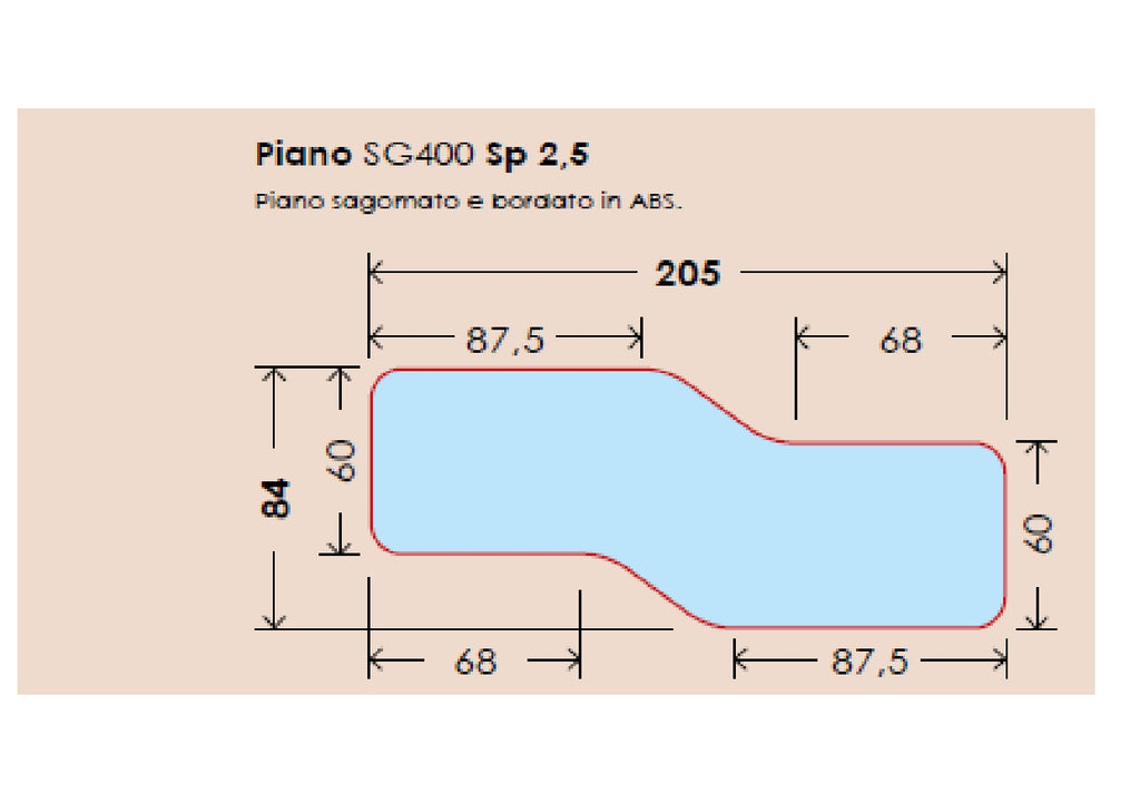 Dimensioni totali cm. 205 - profondità piano cm. 60 (ingombro cm. 84)