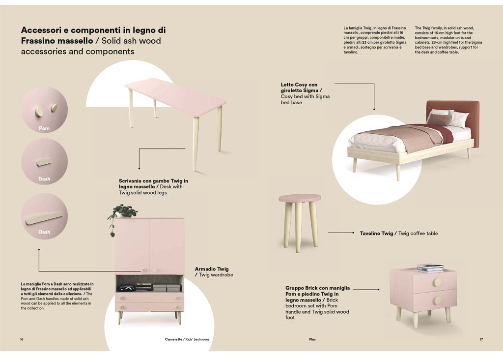 La famiglia Twig, però, è un'intera collezione, dal letto al comodino e cassettiera - tutti gli articoli hanno piedini in legno di Frassino massello: