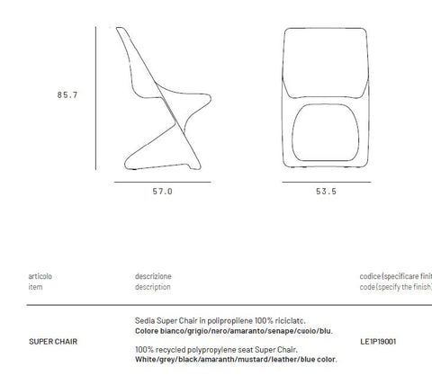 Distinguished by a unique silhouette and organic and harmonious shapes, Super Chair is a stockable monoblock 100% recycled plastic chair, intended for domestic and contract environments. Super Chair is a project conceived with the ambition of becoming an icon in the seating world, easily recognizable from the shape and the soft touch effect. The chair, entirely Made in Italy, is produced with injection molding technology and it’s made of 100% recycled polypropylene with a SILKY® finish to give the chair a more sophisticated rendering and a velvety soft touch.