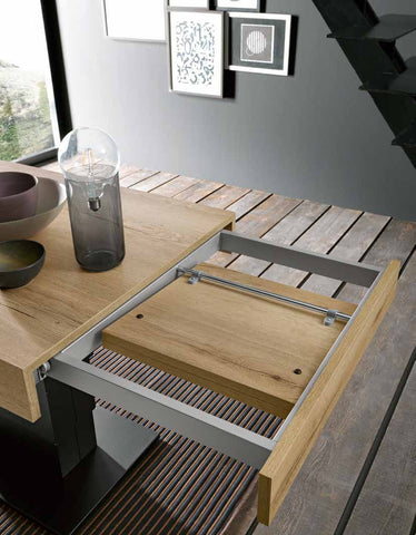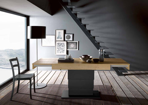 ARES WING è un Tavolino trasformabile in tavolo da pranzo, struttura centrale in acciaio, meccanismo