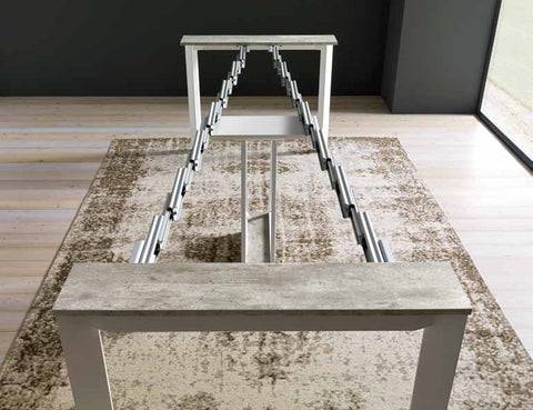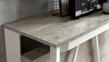 LA SUA VERSATILITÀ È TALE DA TRASFORMARSI DA CONSOLLE SALVASPAZIO AD AMPIO TAVOLO DA PRANZO: CIÒ È POSSIBILE GRAZIE ALL’INGEGNOSO SISTEMA DI ALLUNGHE COLLOCATO ALL’INTERNO DEL PIANO.